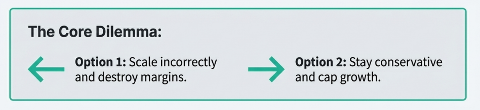 - Precision Scaling: A disciplined approach focused on building clean, efficient systems. Characterized by controlled spend, predictable growth, and protecting profit margins at every stage. Scalability is built on a foundation of profitability.