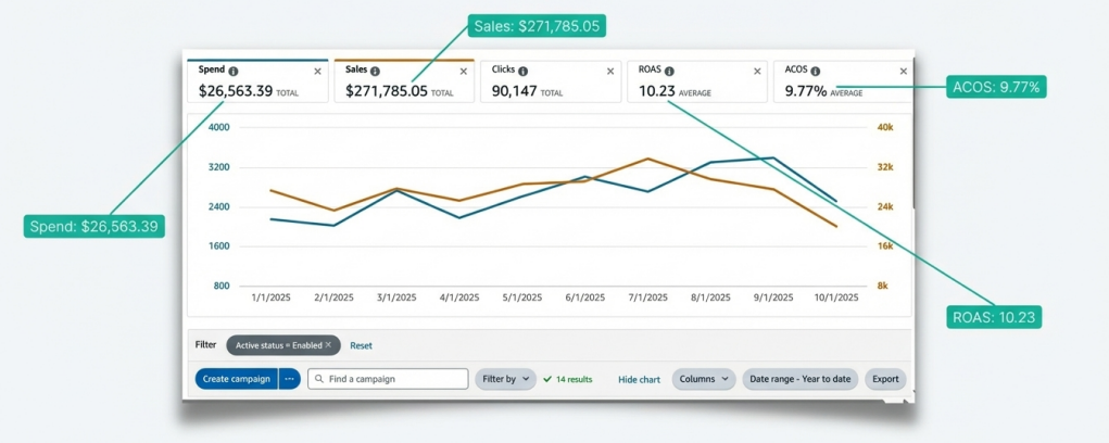 The Result: Ads drove sales, not dependency, achieving a 10.23 ROAS and 9.77% ACOS.
